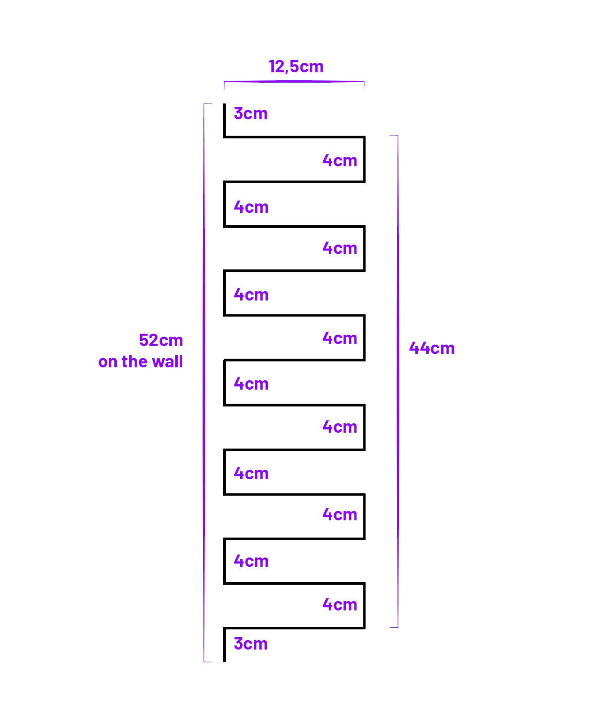 Width 120mm x depth 125mm x height 520mm on the wall and 440mm in space